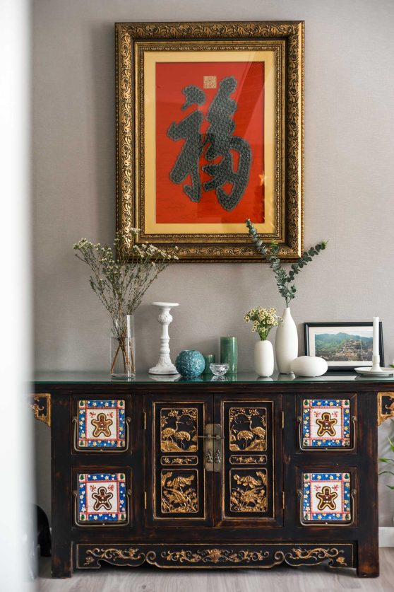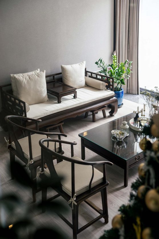 Upon entering the villa, guests are greeted by the spacious living room located on the first floor. The room’s high ceilings and expansive windows allow for an abundance of natural light, giving a sense of openness and airiness. Traditional Chinese elements such as wooden screens and calligraphy artworks blend seamlessly with modern furnishings, creating an inviting atmosphere ideal for social gatherings or quiet relaxation.